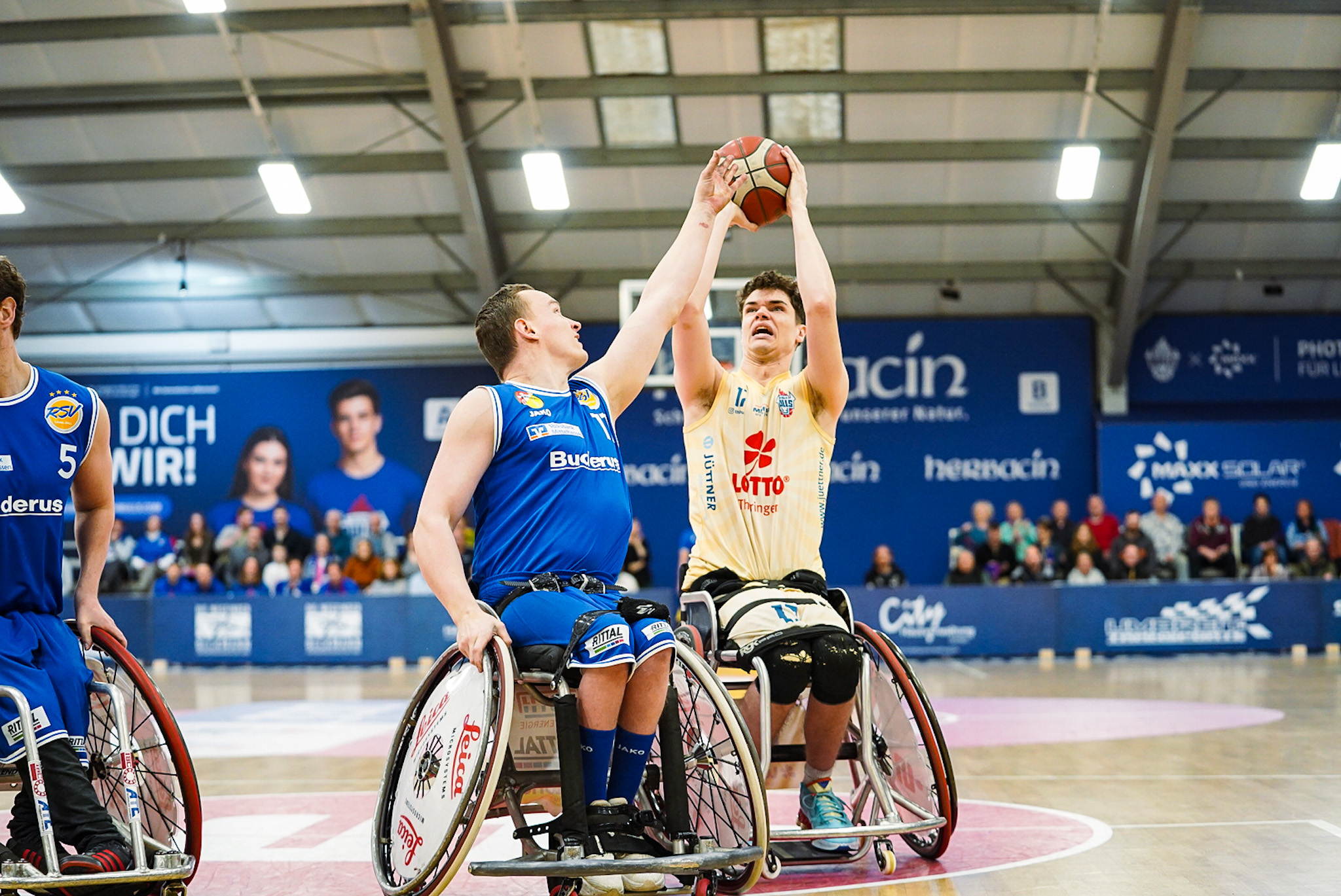 Die Thuringia Bulls bezwingen den RSV Lahn-Dill in einem spannenden Topspiel mit 75:70 (12:19, 17:16, 24:12, 22:23). Es war wieder soweit: Der „El Clásico“ des deutschen Rollstuhlbasketballs zwischen dem RSV Lahn-Dill und den RSB Thuringia Bulls elektrisierte einmal mehr die gesamte Rollstuhlbasketballfamilie. Die Vorzeichen vor der Partie hätten dabei kaum unterschiedlicher sein können. Während die Hessen nach einer bislang herausfordernden Saison mit einer Portion Extra-Motivation in den ausverkauften Bullenstall reisten, gingen die TH Bulls weiterhin ungeschlagen und viel Selbstbewusstsein in das Spitzenspiel. Verzichten mussten die Thüringer jedoch auf ihren Topscorer Alex Halouski, der aufgrund einer Handverletzung nicht zur Verfügung stand.