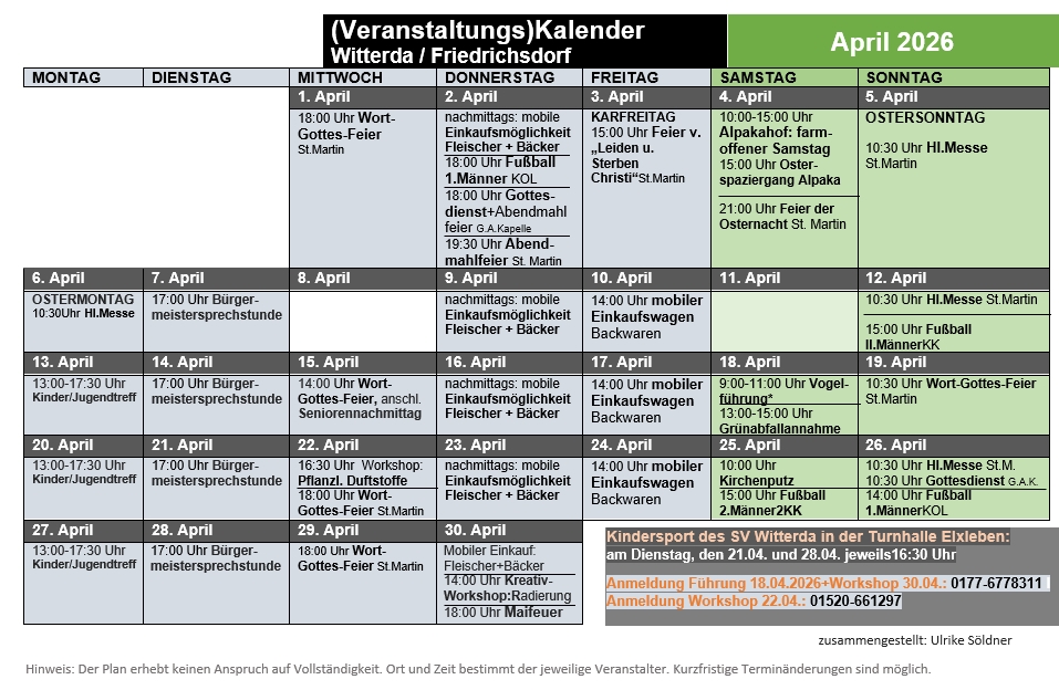 Veranstaltungsübersicht Witterda