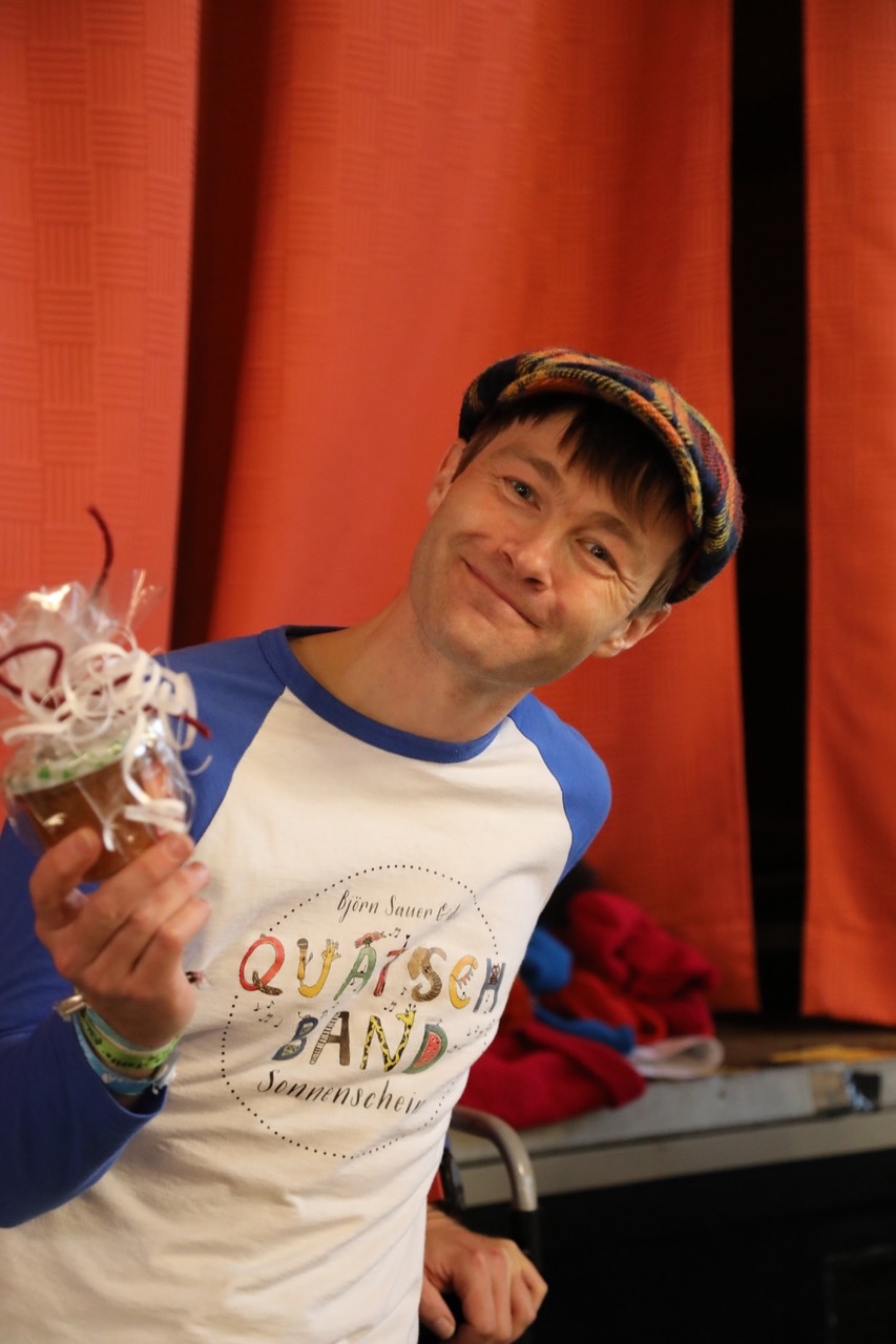 Björn Sauer ist nicht nur Grundschullehrer, sondern auch Texter und Komponist, Sänger, Pianist und Kabarettist (Die Arche). Seine „Quatschband Sonnenschein“, bei der in wechselnder Besetzung bis zu 10 Kinder aktiv sind, musiziert nach eigenen Kompositionen. Die Texte verbreiten – Name ist Bedeutung – gute Laune oder einfach Sonnenschein, was nachdenklich stimmende Werke keineswegs ausschließt.