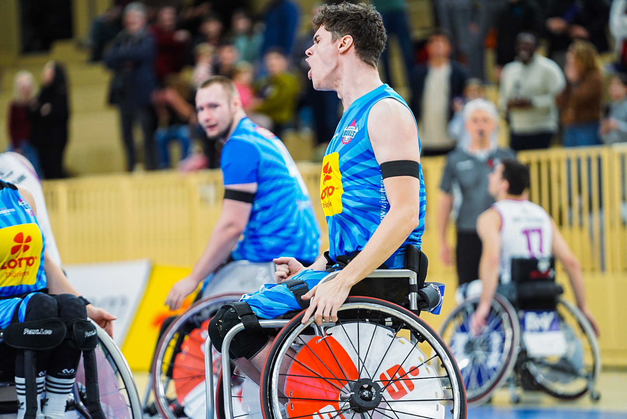 Der Start in den zweiten Abschnitt gehörte den Hausherren. Nach einem Buzzer von Dreimüller und einem Korbleger von Neuzugang Furusawa erspielten sie sich eine 18:13-Führung (13. Minute). Diese zwang Head Coach Bienek zur Auszeit, die Wirkung zeigte. Sein Team drehte die Partie und übernahm beim 19:18 (15. Minute) wieder die Führung. Es war kein Spiel für Feinschmecker, sondern für Liebhaber von robustem Rollstuhlbasketball. Die vielen zweiten Wurfchancen hielten die Rhinos im Spiel, die vor allem Mojtaba Kamali konsequent ausnutzte. Mit der Schlusssirene verkürzte er auf den Halbzeitstand von 25:23.