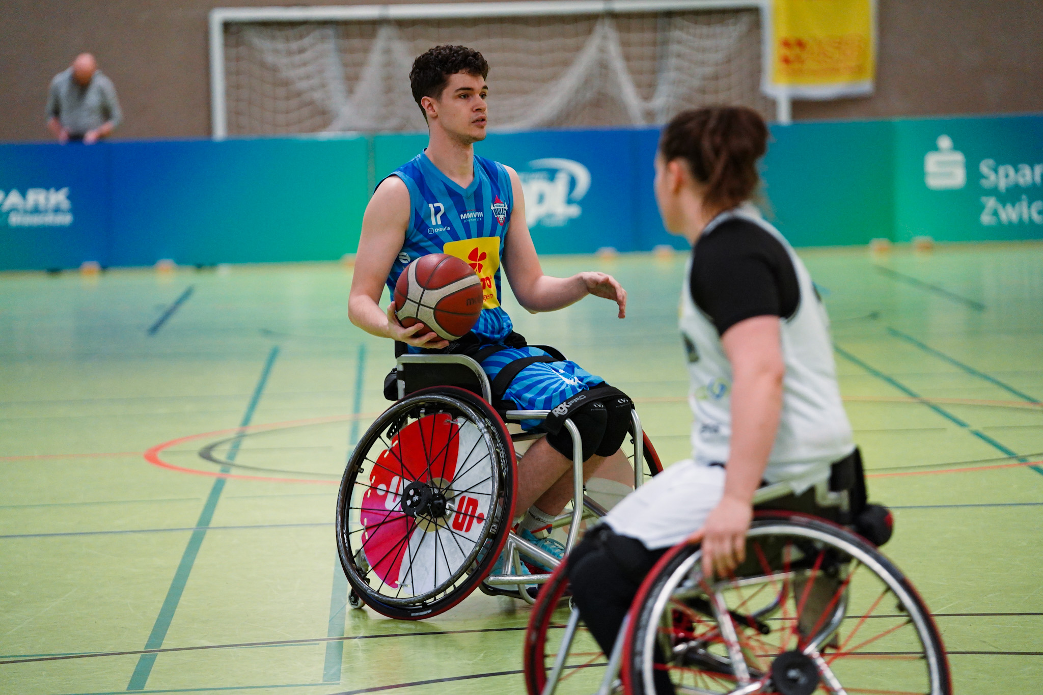 Die Thuringia Bulls bezwingen den RSV Lahn-Dill in einem spannenden Topspiel mit 75:70 (12:19, 17:16, 24:12, 22:23). Es war wieder soweit: Der „El Clásico“ des deutschen Rollstuhlbasketballs zwischen dem RSV Lahn-Dill und den RSB Thuringia Bulls elektrisierte einmal mehr die gesamte Rollstuhlbasketballfamilie. Die Vorzeichen vor der Partie hätten dabei kaum unterschiedlicher sein können. Während die Hessen nach einer bislang herausfordernden Saison mit einer Portion Extra-Motivation in den ausverkauften Bullenstall reisten, gingen die TH Bulls weiterhin ungeschlagen und viel Selbstbewusstsein in das Spitzenspiel. Verzichten mussten die Thüringer jedoch auf ihren Topscorer Alex Halouski, der aufgrund einer Handverletzung nicht zur Verfügung stand.