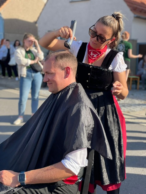 Die Frage stand im Raum – genauer gesagt im Saal – ob sich alle Elxlebener Kirmesburschen würden eine Glatze schneiden lassen oder, falls nicht, wenigstens drei von ihnen und zusätzlich 2.500 Euro an Spenden sammeln könnten für die Hilfe an Krebs erkrankter Kinder. Dass die attraktiven jungen Männer ihre Haarpracht nur teilweise (mit sehr kurzen Haarschnitten) opferten und lieber das Geld für kranke Kinder bzw. deren Familien aufbrachten, ist aller Ehre wert.