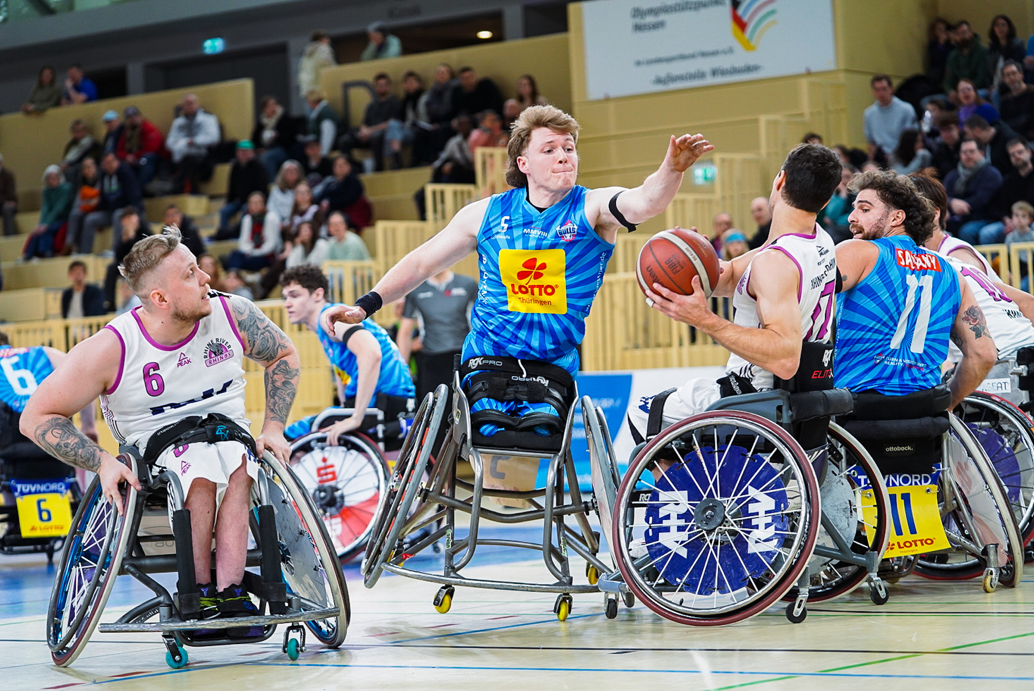 Thuringia Bulls gewinnen mit kleiner Rotation das Spitzenspiel bei den Rhine River Rhinos nach Verlängerung mit 66:59 (11:13, 14:10, 17:15, 12:16, 12:5). Das Bienek-Team reiste ersatzgeschwächt zum Spitzenspiel nach Wiesbaden. Mit Vahid Azad und Joakim Linden fehlten die beiden Topscorer des vergangenen Doppel-Wochenendes. Grund genug für Co-Trainer Jens Albrecht, sein Trikot mit der Nummer 12 wieder vom Bügel zu nehmen.