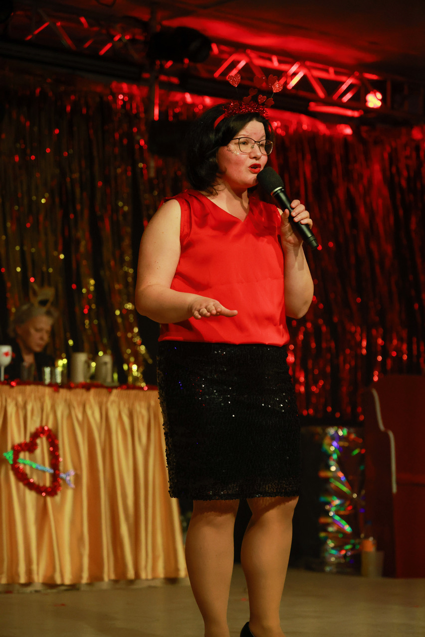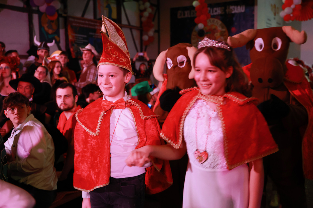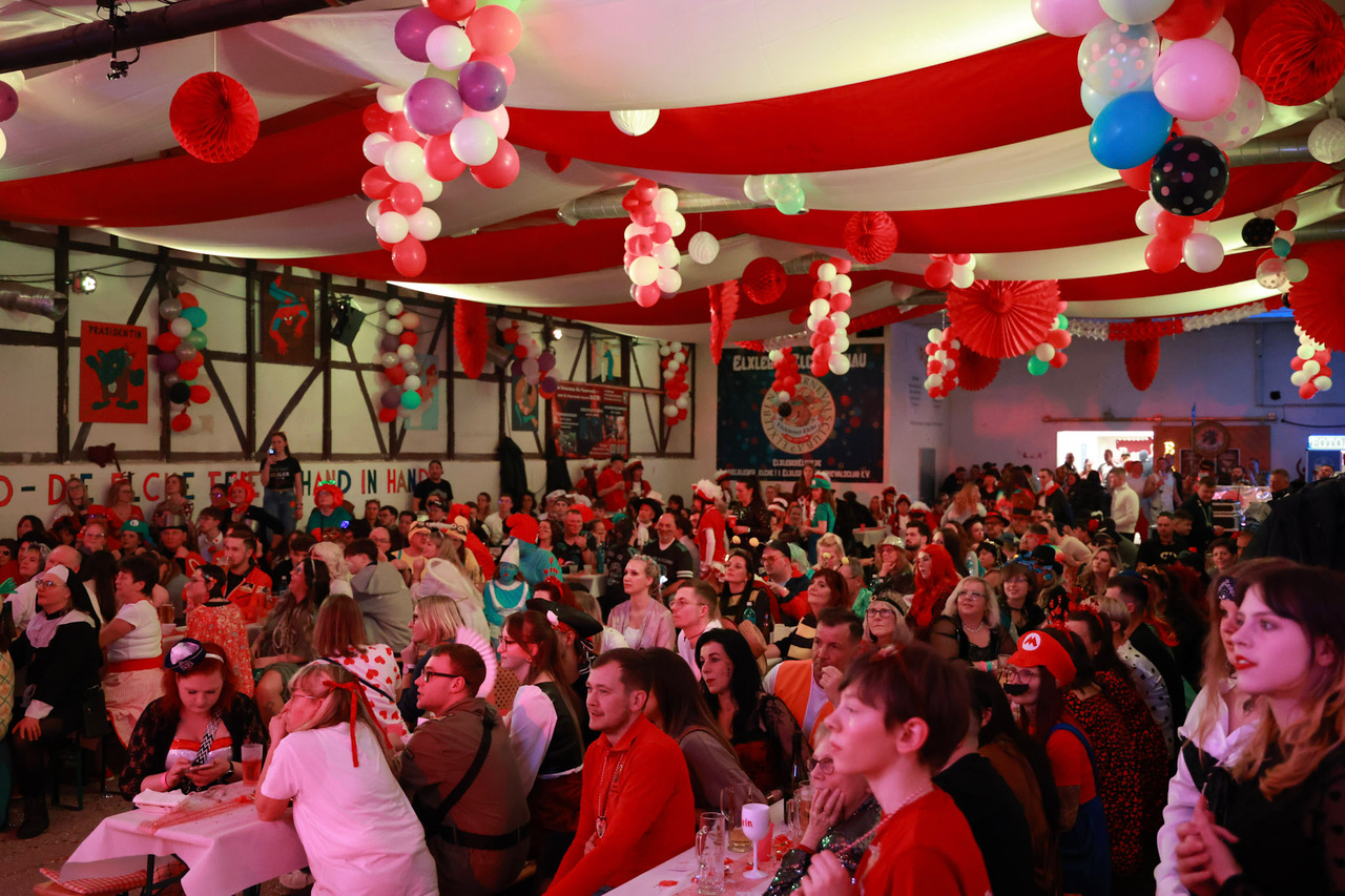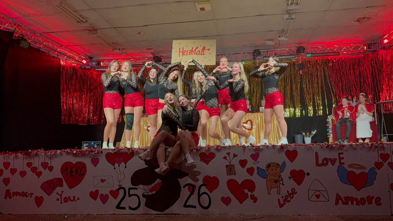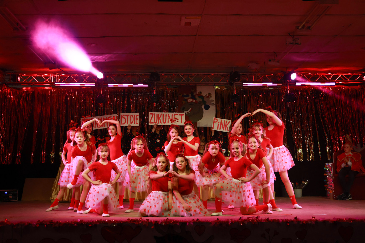 Da der Valentinstag auf das Karnevalswochenende fiel, haben die „Elxleb’er Elche“ das Thema der Liebe in all ihren Facetten inszeniert – von Freundschaft über erste vorsichtige Annäherungsversuche, späterhin aufregende Datings zur Wahl der oder des Richtigen, über Schmetterlinge im Bauch bis hin zu käuflicher Liebe.
